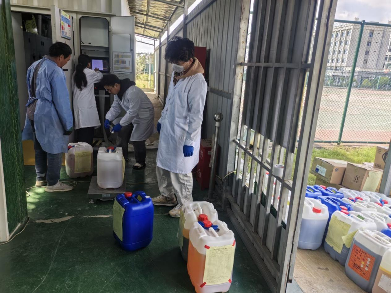 为保障秋冬季节实验室安全运行,消除危废长期积存隐患,10月23日,环化学院在学校实验室管理处统筹指导下,组织师生与专业处置机构协同配合,顺利完成2025年度第四批实验室危险废物集中转运工作。