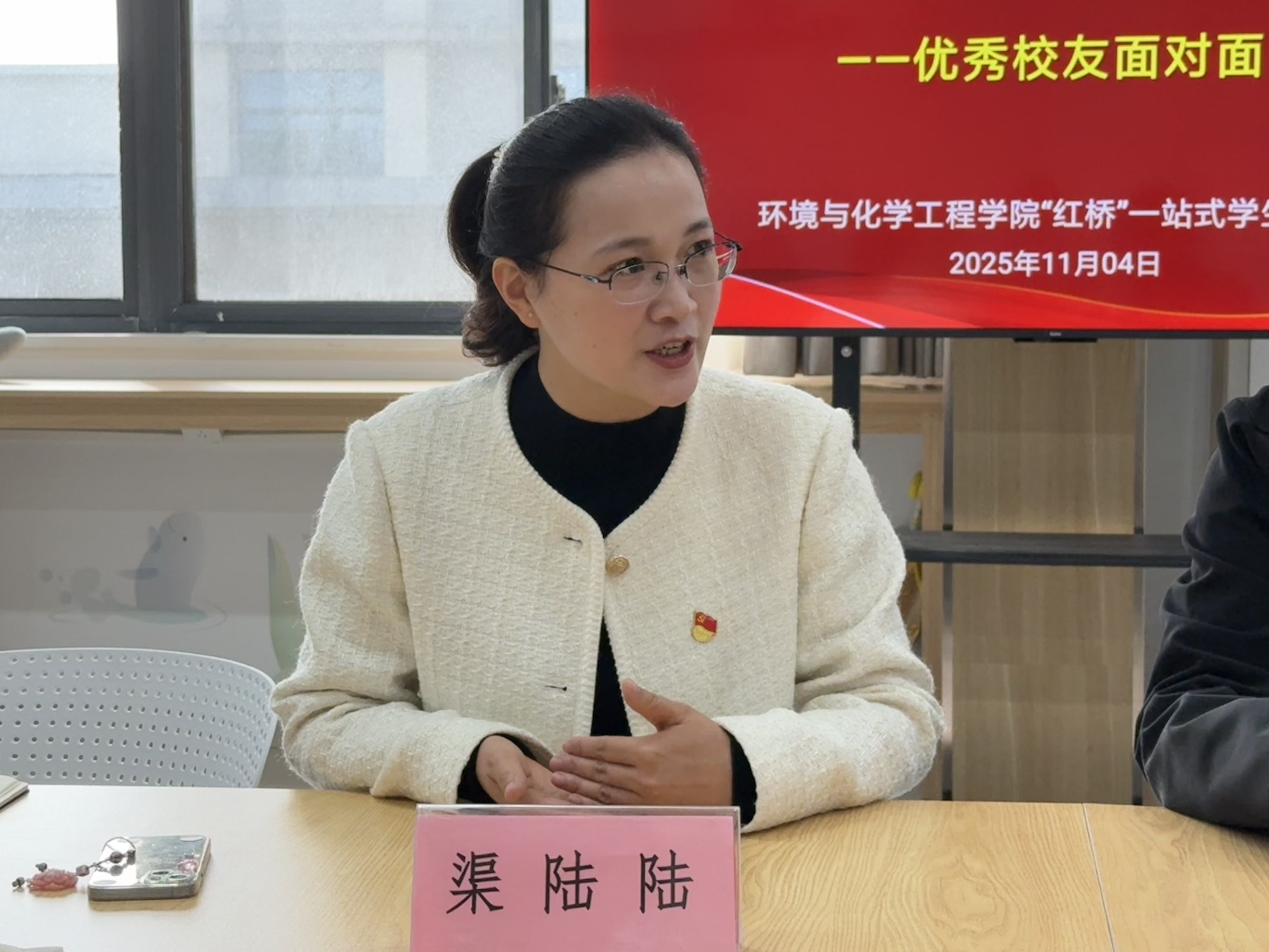 为助力学生明晰学业方向、破解升学就业困惑,11月4日环化学院特邀我校05级应用化学专业优秀校友、博士生导师、江苏师范大学化学与材料科学学院副院长渠陆陆,在“红桥”一站式学生社区开展“薪火相传·启蒙未来”优秀校友面对面交流座谈活动。学院党委副书记王召征、辅导员及应用化学专业学生代表参会。