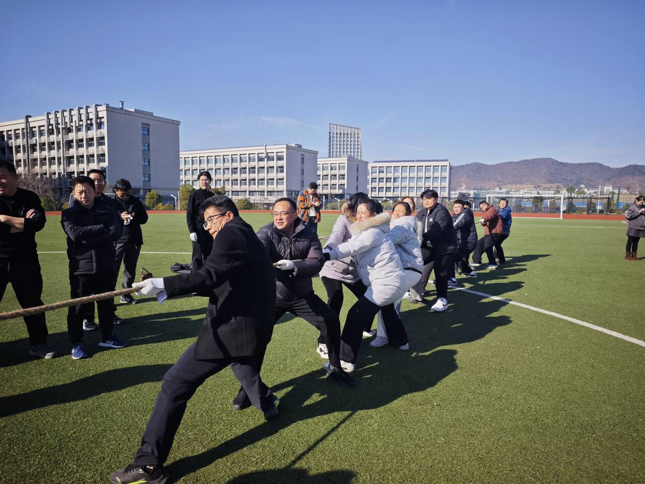12月26日下午,环境与化学工程学院在长山校区东操场成功举办首届系部教师拔河比赛。本次比赛旨在丰富教职工的课余文化生活,增强各系部之间的交流与凝聚力,展现环化学院团结协作、勇于拼搏的精神风貌。